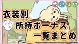 以下ページで、各衣装別の適正料理一覧を確認できますので、ぜひご活用ください。