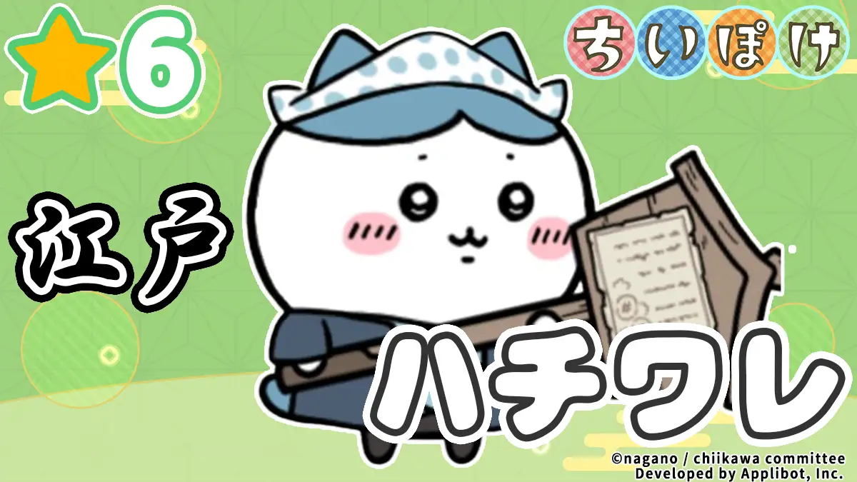 『ちいかわぽけっと(ちいぽけ)』に登場する「ハチワレ(江戸)」の紹介ページです。ハチワレ(江戸)の特技や入手方法、ステータスに加え、衣装レベルアップや衣装ランクアップ時のボーナスなど、基本情報や評価を掲載しています。